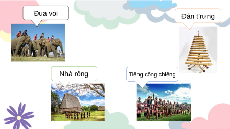 ĐẾN VỚI TIẾT HỌC MỚI KHỞI ĐỘNG Khi nhắc đến vùng đất Tây Nguyên, em nghĩ đến những hình ảnh gì? Đua voi Đàn t’rưng Nhà rông Tiếng cồng chiêng
