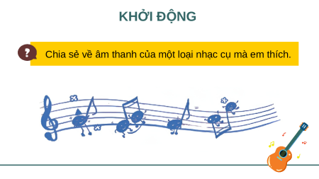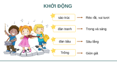Chia sẻ về âm thanh của một loại nhạc cụ mà em thích. KHỞI ĐỘNG sáo trúc Réo rắt, vui tươi đàn tranh Trong và sáng đàn bầu Sâu lắng Trống Giòn giã KHỞI ĐỘNG
