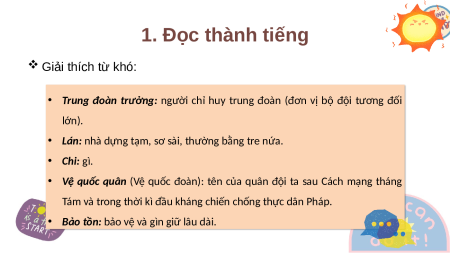 BÀI ĐỌC 4. Ở LẠI VỚI CHIẾN KHU NỘI DUNG BÀI HỌC 1 Đọc thành tiếng 2 Đọc hiểu 3 Luyện tập