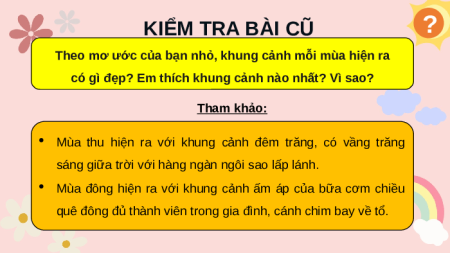 Đọc nối tiếp bài Bốn mùa mơ ước. KIỂM TRA BÀI CŨ Tham khảo: