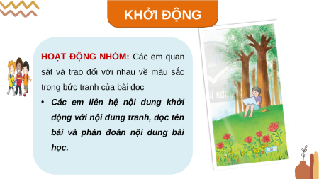 bài và phán đoán nội dung bài học. BÀI 7: SẮC MÀU TIẾT 1 + 2: ĐỌC NỘI DUNG