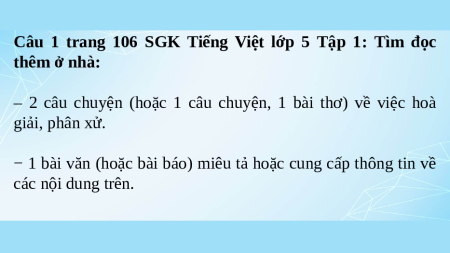 Câu 1 trang 106 SGK Tiếng Việt lớp 5 Tập 1: Tìm đọc thêm ở nhà: