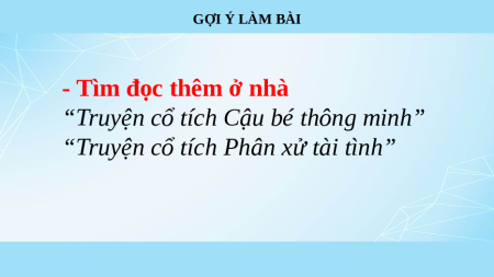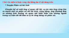 – 2 câu chuyện (hoặc 1 câu chuyện, 1 bài thơ) về việc hoà giải, phân xử.