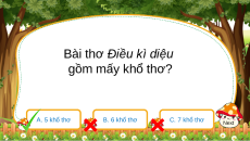 A. 5 khổ thơ C. 7 khổ thơB. 6 khổ thơ