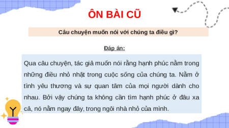 Qua câu chuyện, tác giả muốn nói rằng hạnh phúc nằm trong