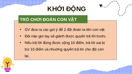 • GV đưa ra các gợi ý để 2 đội đoán ra tên con vật.