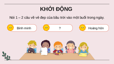 Nói 1 – 2 câu về vẻ đẹp của bầu trời vào một buổi trong ngày. Bình minh ? Hoàng hôn Tâp đọc BÀI 4. TRONG ÁNH BÌNH MINH