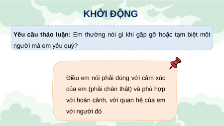 Yêu cầu thảo luận: Em thường nói gì khi gặp gỡ hoặc tạm biệt một người mà em yêu quý?