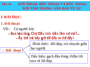 Tiết: 64 ĐỐI THOẠI, ĐỘC THOẠI VÀ ĐỘC THOẠI