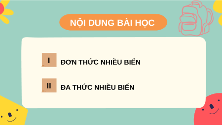 BÀI 1. ĐƠN THỨC NHIỀU BIẾN. ĐA THỨC NHIỀU BIẾN NỘI DUNG BÀI HỌC I