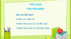 CÁC EM ĐẾN TIẾT HỌC HÔM NAY TRÒ CHƠI “TRUYỀN ĐIỆN” Các em lần lượt: o Đếm từ 1 đến 10