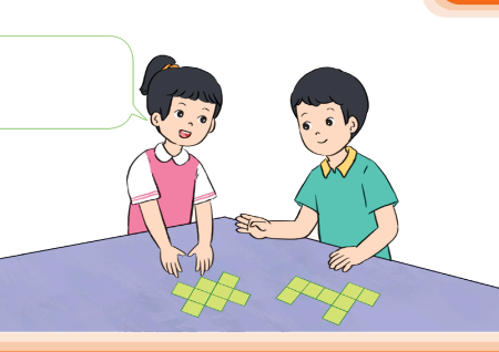 Hình B gồm 5 ô vuông 1 cm². Diện tích hình B bằng 5 cm².