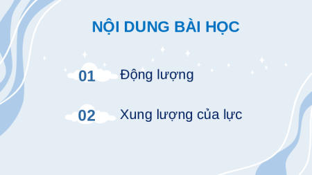 BÀI 28. ĐỘNG LƯỢNG NỘI DUNG BÀI HỌC 01 Động lượng 02 Xung lượng của lực