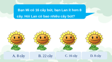 Bạn Mi có 16 cây bút, bạn Lan ít hơn 8