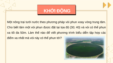 Cho biết tâm một vòi phun được đặt tại tọa độ (30; 40) và vòi có thể phun