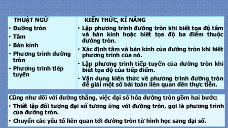 • Chuyển các yếu tố liên quan tới đường tròn từ hình học sang đại số.