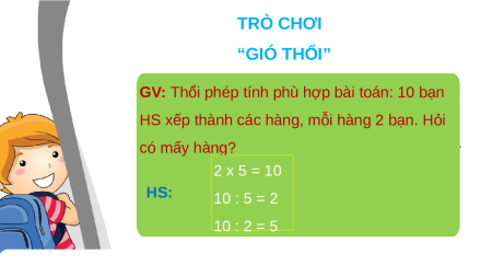 HS: Thổi gì, thổi gì? 2 x 5 = 10