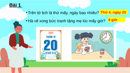 • Trên tờ lịch là thứ mấy, ngày bao nhiêu? Thứ 4, ngày 20