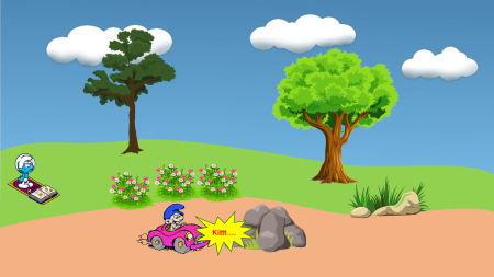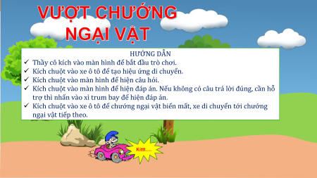 Kích chuột vào xe ô tô để chướng ngại vật biến mất, xe di chuyển tới chướng