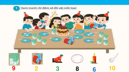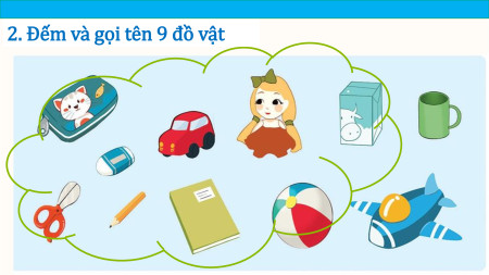 b)Lấy từ bộ đồ dùng học tập 7 đồ vật