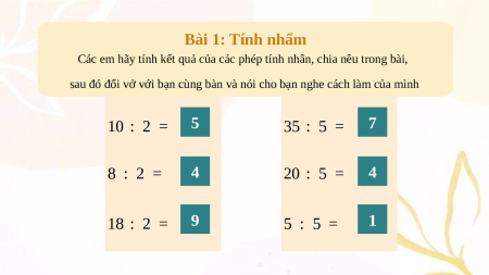 Các em hãy tính kết quả của các phép tính nhân, chia nêu trong bài,