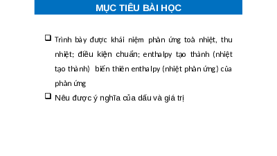 Giáo án powerpoint Enthalpy tạo thành và biến thiên enthalpy của phản ứng hóa học Hóa học 10 Chân trời sáng tạo