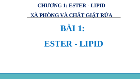 XÀ PHÒNG VÀ CHẤT GIẶT RỬA BÀI 1: ESTER - LIPID NỘI DUNG BÀI HỌC 1. ESTER 2. CHẤT BÉO • Mô tả khái niệm