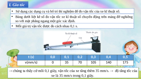 xe là 35 mm/s trong 0,1 giây. I. Gia tốc