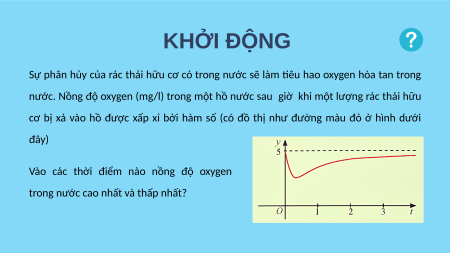 nước. Nồng độ oxygen (mg/l) trong một hồ nước sau giờ khi một lượng rác thải hữu