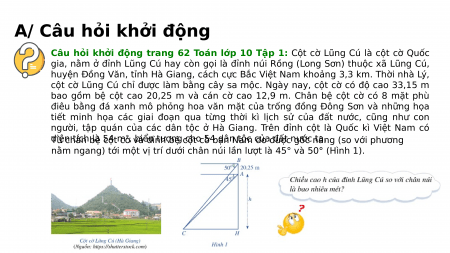 Câu hỏi khởi động trang 62 Toán lớp 10 Tập 1: Cột cờ Lũng Cú là cột cờ Quốc