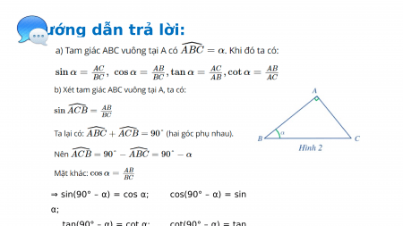 b) Biểu diễn tỉ số lượng giác của góc 90° – α theo tỉ số lượng giác của góc α.