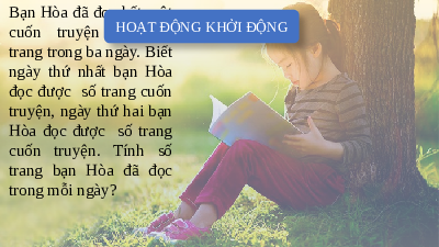Bạn Hòa đã đọc hết một cuốn truyện dày HOẠ 80 T ĐỘNG KHỞI ĐỘNG trang trong ba ngày. Biết ngày thứ nhất bạn Hòa