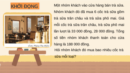 Hỏi nhóm khách đó mua bao nhiêu cốc trà sữa mỗi loại? BÀI 3.