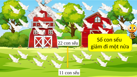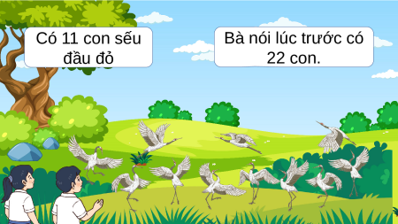 Phân biệt giảm đi và ít hơn Bài tập vận dụng Có 11 con sếu Bà nói lúc trước có đầu đỏ 22 con. Số con sếu 22 con sếu giảm đi một nửa 11 con sếu