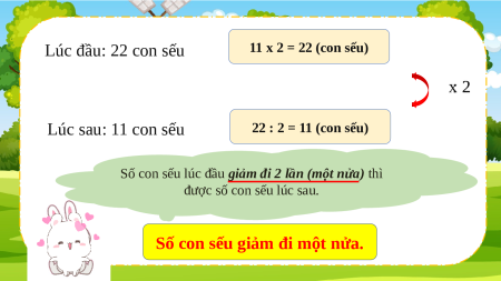 Số con sếu lúc đầu giảm đi 2 lần (một nửa) thì