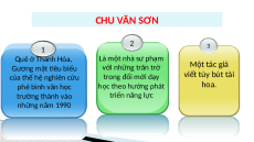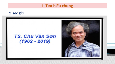 trong thời gian 2 phút. Hết Đọc Đúng thời giờ Tiêu chí thuộc, diễn cảm gian I. Tìm hiểu chung 1. Tác giả CHU VĂN SƠN 2 1 3 Quê ở Thanh Hóa, Là một nhà sư phạm Gương mặt tiêu biểu với những trăn trở Một tác giả