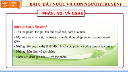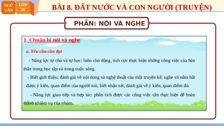 BÀI 8. ĐẤT NƯỚC VÀ CON NGƯỜI (TRUYỆN) VĂN 10 PHẦN: NÓI VÀ NGHE
