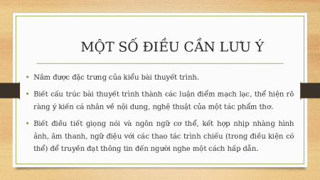 • Biết cấu trúc bài thuyết trình thành các luận điểm mạch lạc, thể hiện rõ