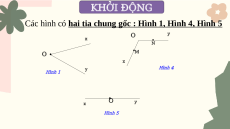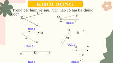 Trong các hình vẽ sau, hình nào có hai tia chung gốc? x x O O A t Hình 2 y Hình 1 O v y M N u M N x Hình 3 Hình 4B A x O y D C Hình 5 Hình 6 KHỞI ĐỘNG