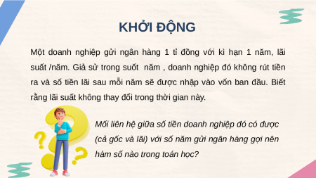 ra và số tiền lãi sau mỗi năm sẽ được nhập vào vốn ban đầu. Biết