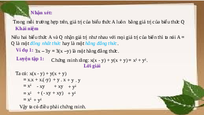 Nếu hai biểu thức A và Q nhận giá trị như nhau với mọi giá trị của biến thì ta nói A =