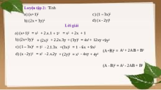 Tổng quát: Với hai biểu thức A, B tuỳ ý ta có: (A+B)2 = A2 + 2AB + B2 (A - B)2 = A2 - 2AB + B2 Luyện tập 2: Tính a) (x+1)2 c) (1 – 3x)2 b) (2x + 3y)2 d) (x - 2y)2 Lời giải