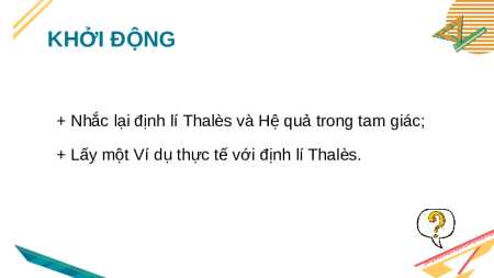 + Nhắc lại định lí Thalès và Hệ quả trong tam giác;