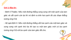 - Định lí Thalès: Nếu một đường thẳng song song với một cạnh của tam