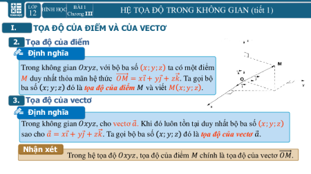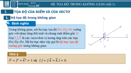 BÀI 1: HỆ TỌA ĐỘ TRONG KHÔNG GIAN (tiết 1)