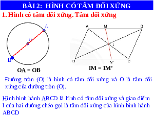 BÀI 2: HÌNH CÓ TÂM ĐỐI XỨNG
