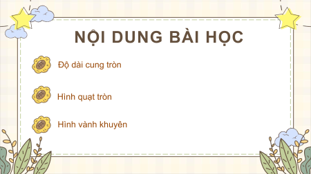 BÀI 4. HÌNH QUẠT TRÒN VÀ HÌNH VÀNH KHUYÊN NỘI DUNG BÀI HỌC Độ dài cung tròn Hình quạt tròn Hình vành khuyên