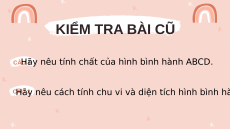 Hãy nêu cách tính chu vi và diện tích hình bình hành. KIỂM TRA BÀI CŨ