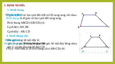 BÀI 3: HÌNH THANG CÂN I. ĐỊNH NGHĨA 1. Hình thang T ứ Đgi ịnác h A n B ghC ĩ D