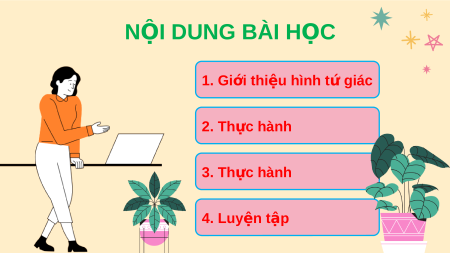 CHÀO M N Ừ G CÁC EM CÙNG Đ N Ế V I Ớ TI T Ế H C Ọ HÔM NAY! KH I Ở Đ N Ộ G Cả l p ớ cùng hát mua BÀI: HÌNH T G Ứ IÁC NỘI DUNG BÀI H C Ọ 1. Gi i ớ thi u ệ hình t g ứ iác 2. Thực hành 3. Thực hành 4. Luy n ệ tập